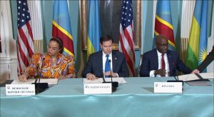La signature de l’accord de paix entre la République démocratique du Congo et le Rwanda, le vendredi...