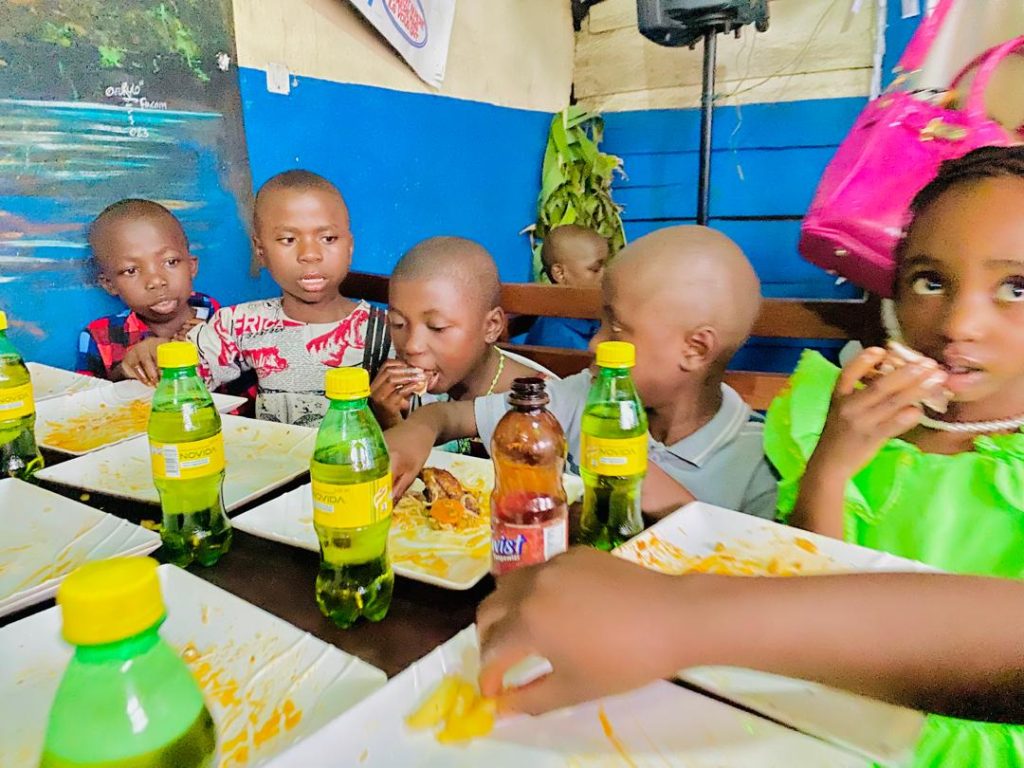 Le groupe Bana Kivu partage un repas de Noël avec les enfants de l'orphelinat Lutonde. Goma. Nord-Kivu. 25 déc. 2024. (Photo d'ensemble)