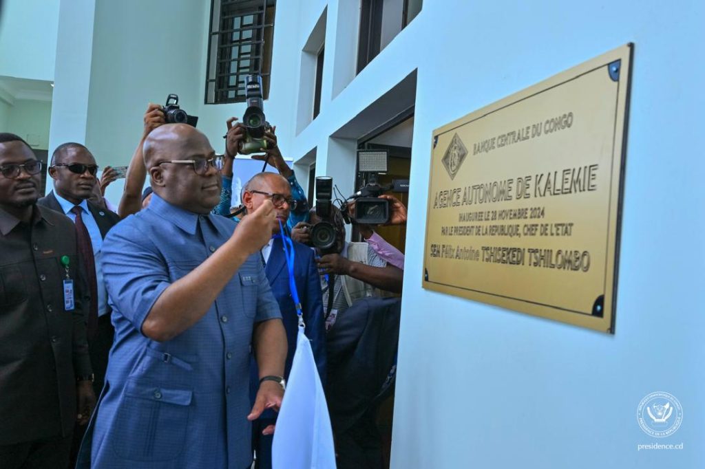Le Président Félix Tshisekedi a inauguré jeudi 28 novembre le bâtiment administratif de l’agence autonome de la Banque centrale du Congo (BCC) à Kalemie, dans la province du Tanganyika. Le Chef de l’État a visité cet ouvrage de 2000 mètres carrés qui abrite non seulement les services de la banque, mais aussi des appartements pour ses hôtes de marque.