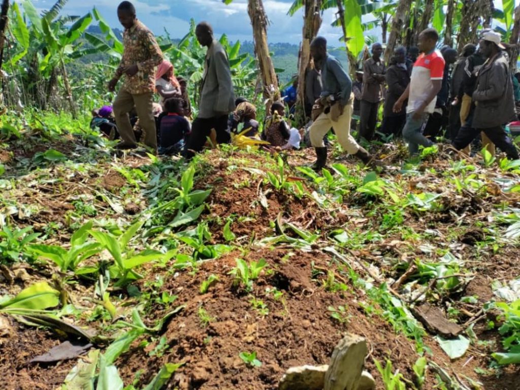 Des habitants dans un cimetière pour l'enterrement de victimes des ADF dans le Lubero. Photo : Droits tiers.