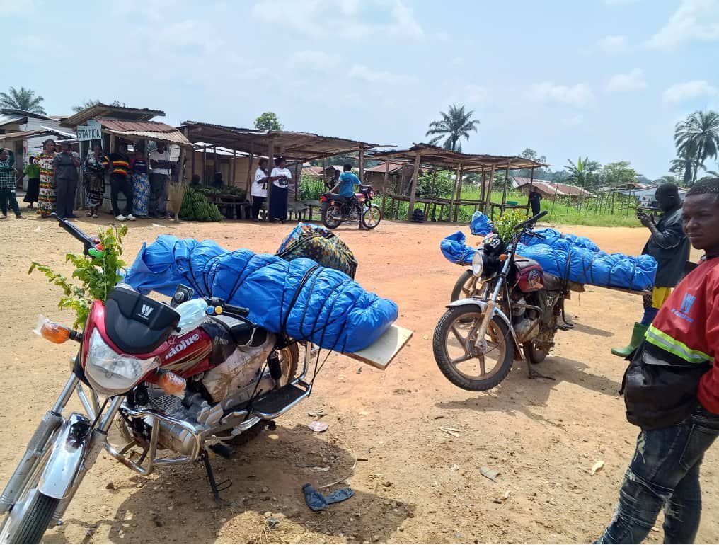 À Komanda, des corps des victimes du massacre du 27 juillet transportés à moto. © Photo : droits tiers