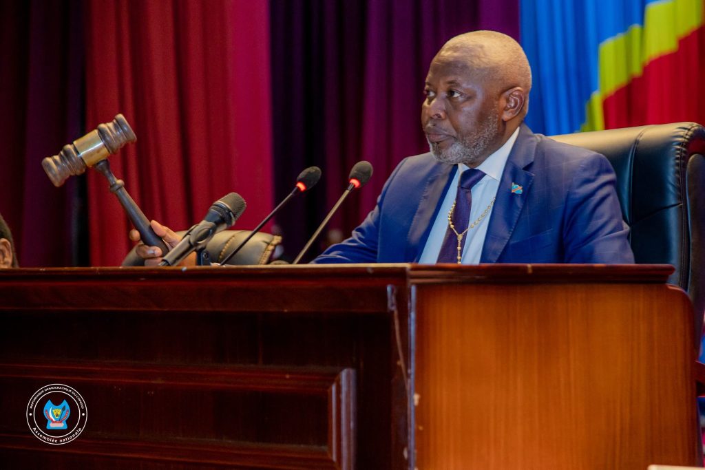 Vital Kamerhe, président de l'Assemblée nationale - Coup de marteau à la clôture de la session parlementaire de mars 2025. Palais du Peuple © AN-RDC