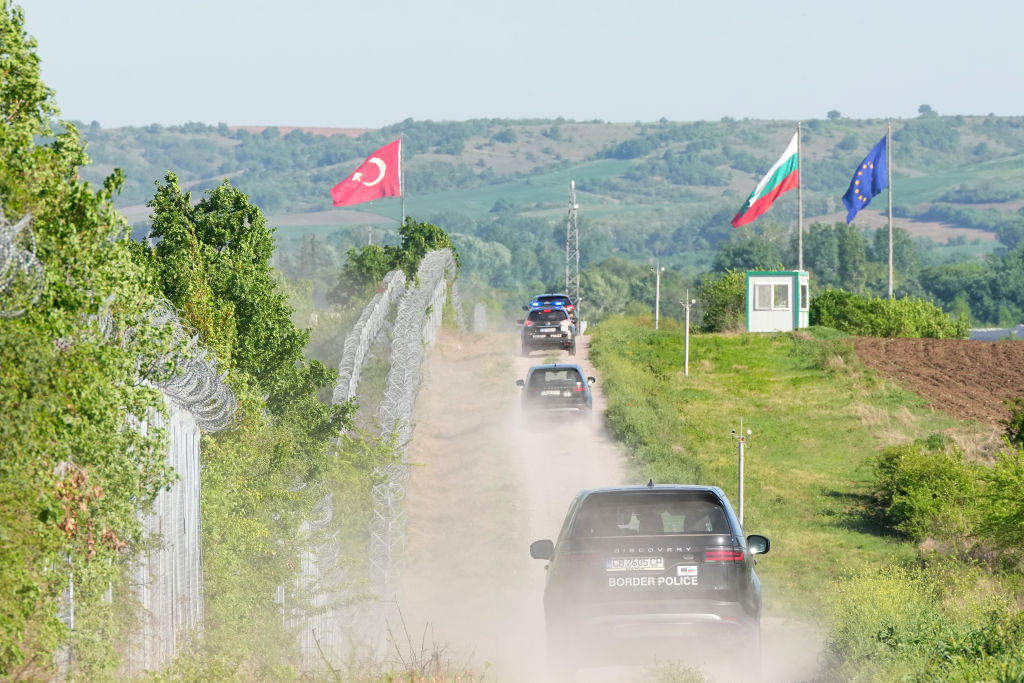 Des véhicules de la police des frontières circulent le long de la frontière bulgaro-turque. [DPA/Soeren Stache]